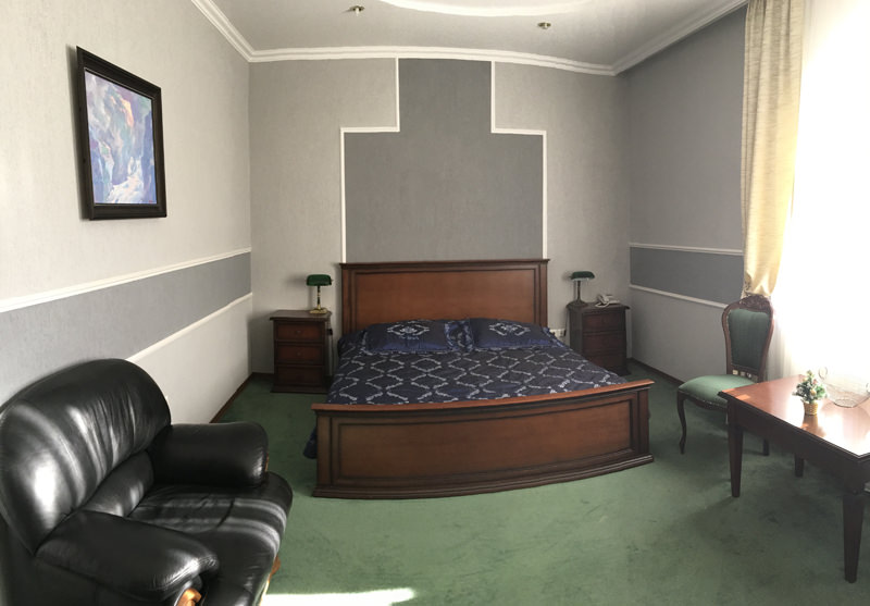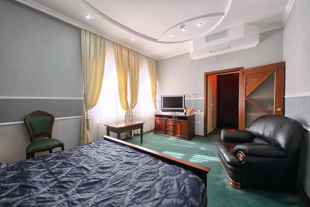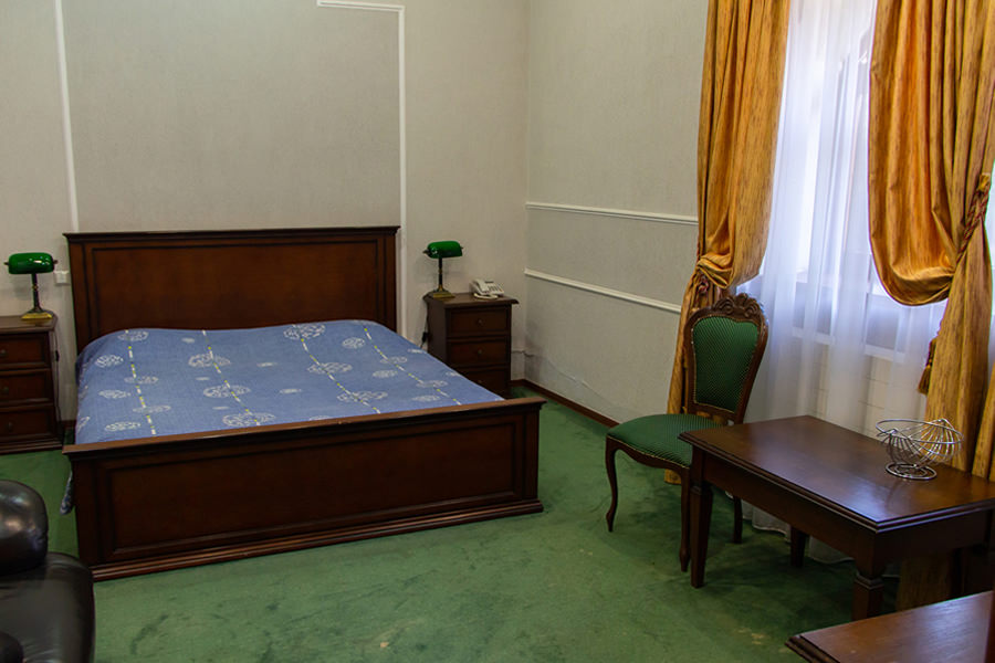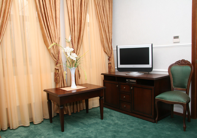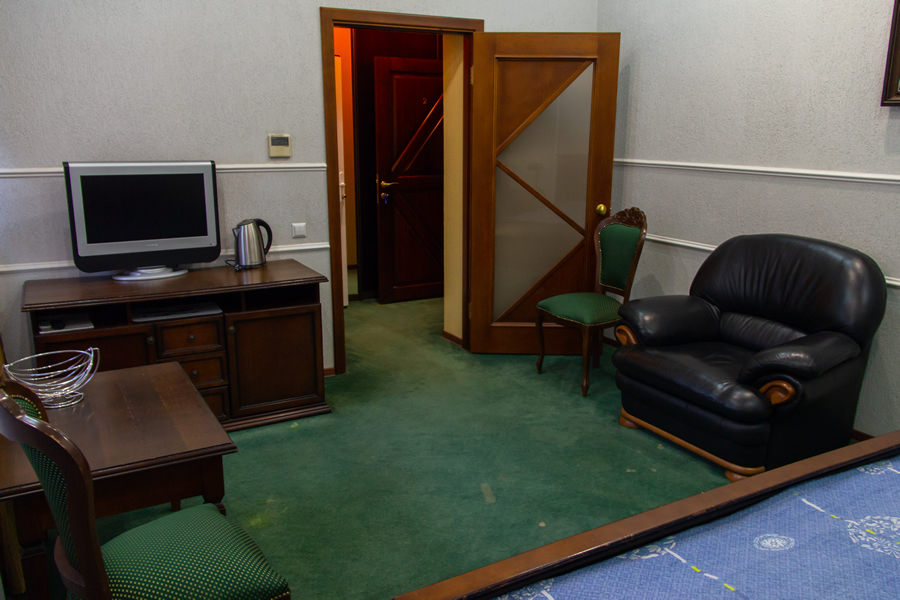 Номер категории люкс оформлен в классическом стиле. Здесь есть современная техника и комфортная мебель.